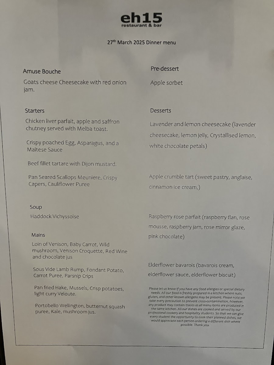 Patrons like Dougie Stirling and James Turner have praised the food as equivalent to that of a high-end restaurant but at a fraction of the price. Many reviews indicate that while you might experience slight delays or the occasional mix-up—typical of a learning environment—the quality of the food and the genuine hospitality more than make up for it. It's this blend of learning and serving excellence that makes EH15 a delightful dining experience.